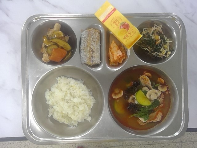 2월2일 기장밥 짬뽕국 등심탕수육 콩나물모자반무침 갈치구이(자율) 애플망고젤리 배추김치 우유