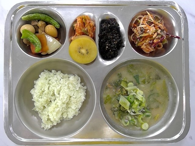 2월6일 클로렐라쌀밥 냉이국 돼지고기메추리알장조림 돼지고기메추리알장조림 쫄면야채무침 건파래볶음(자율) 골드키위 배추김치 우유
